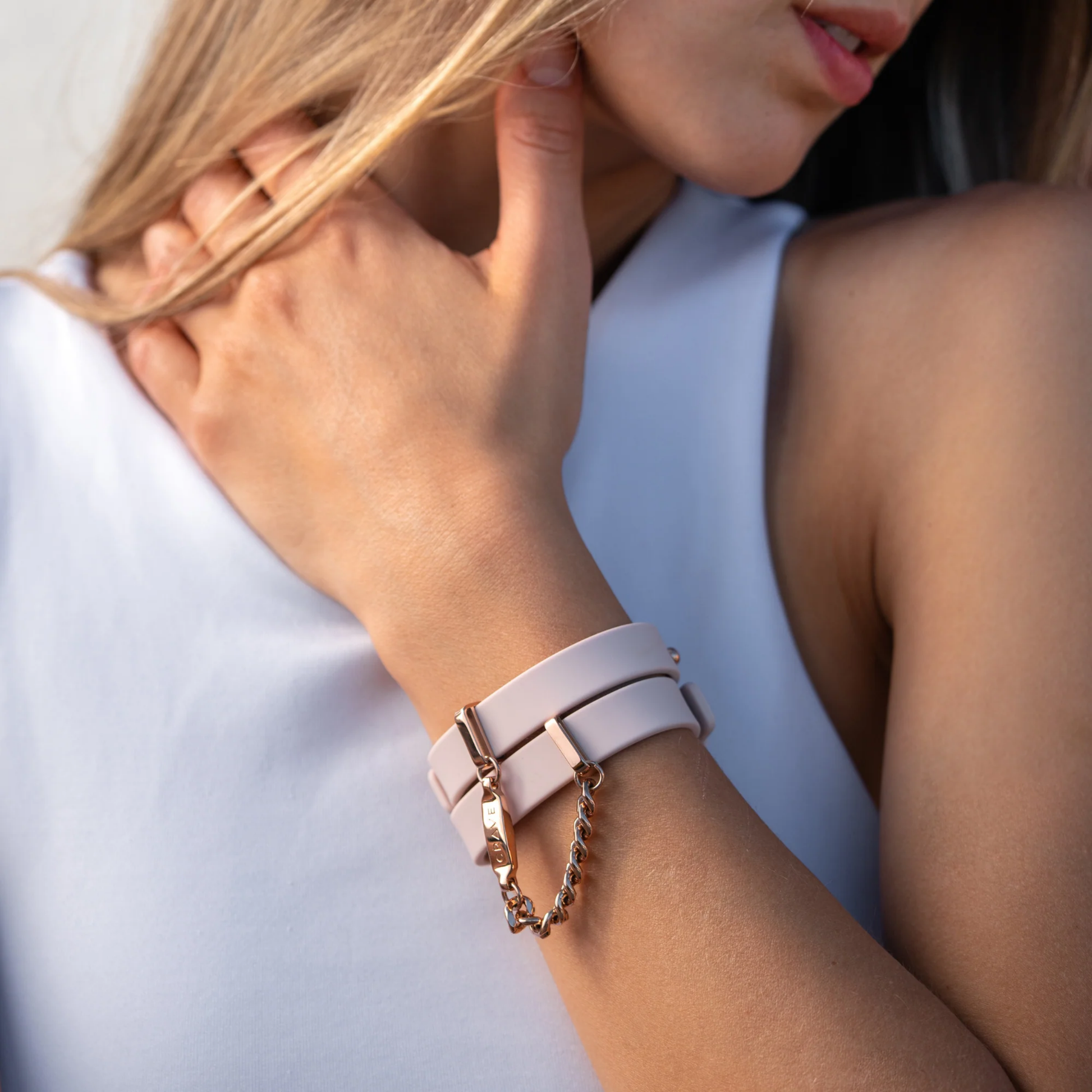 The Mini Pleasure Jewelry Set pairs the powerful Vesper Mini with the bold elegance of the ICON and ID Cuffs for a striking expression of confidence and connection. The Vesper Mini features five vibration settings, including Wave and Turbo, in a discreet, waterproof, USB-C rechargeable pendant designed to gently warm during use. The ICON Cuffs showcase genuine leather bands with stainless steel hardware and nickel-free plating, finished with adjustable sizing for a secure, comfortable fit, and the ID Cuffs feature a silicone band for lighter intimate play and a beautiful stack with dangling chain.