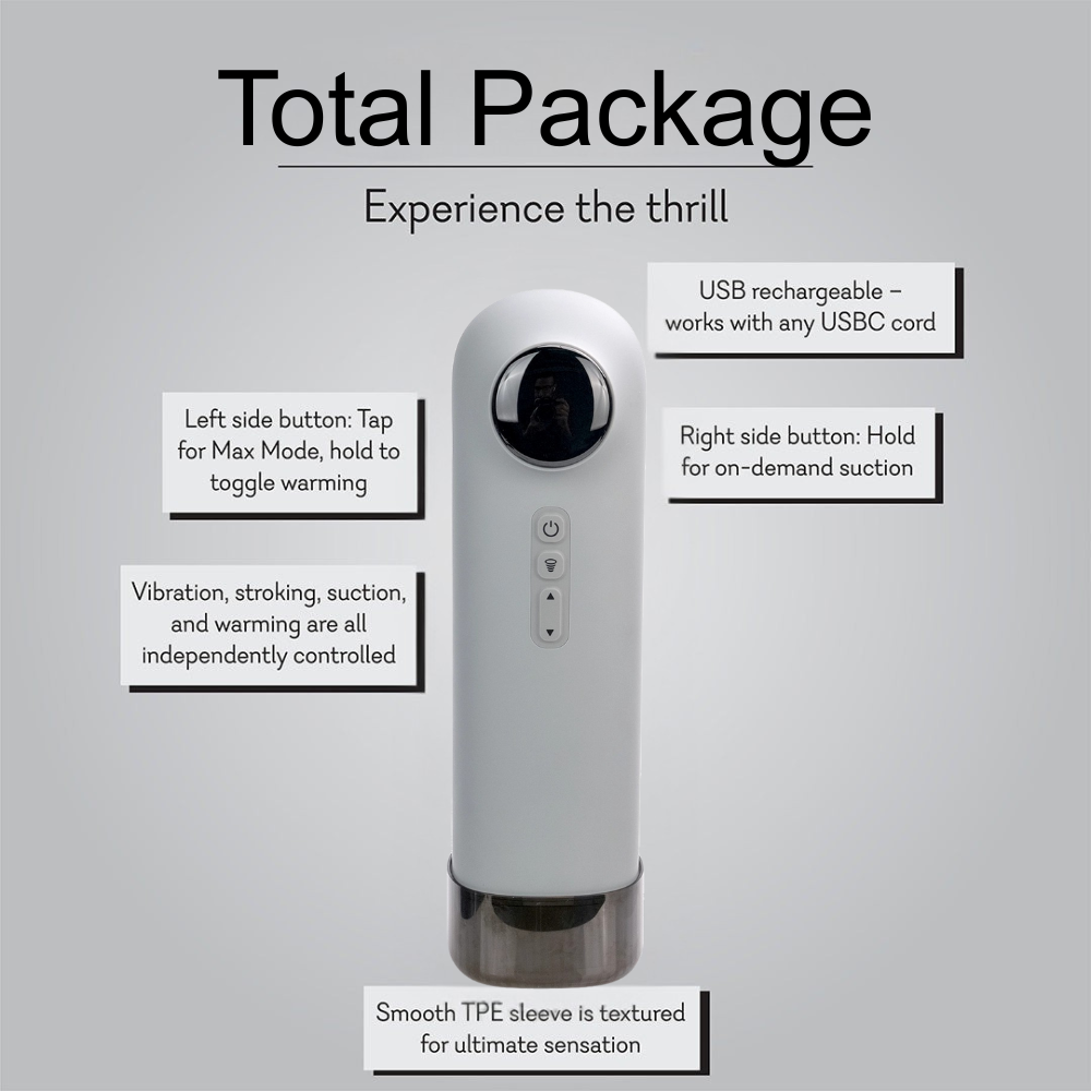 - Strokes, vibrates, suctions, and warms