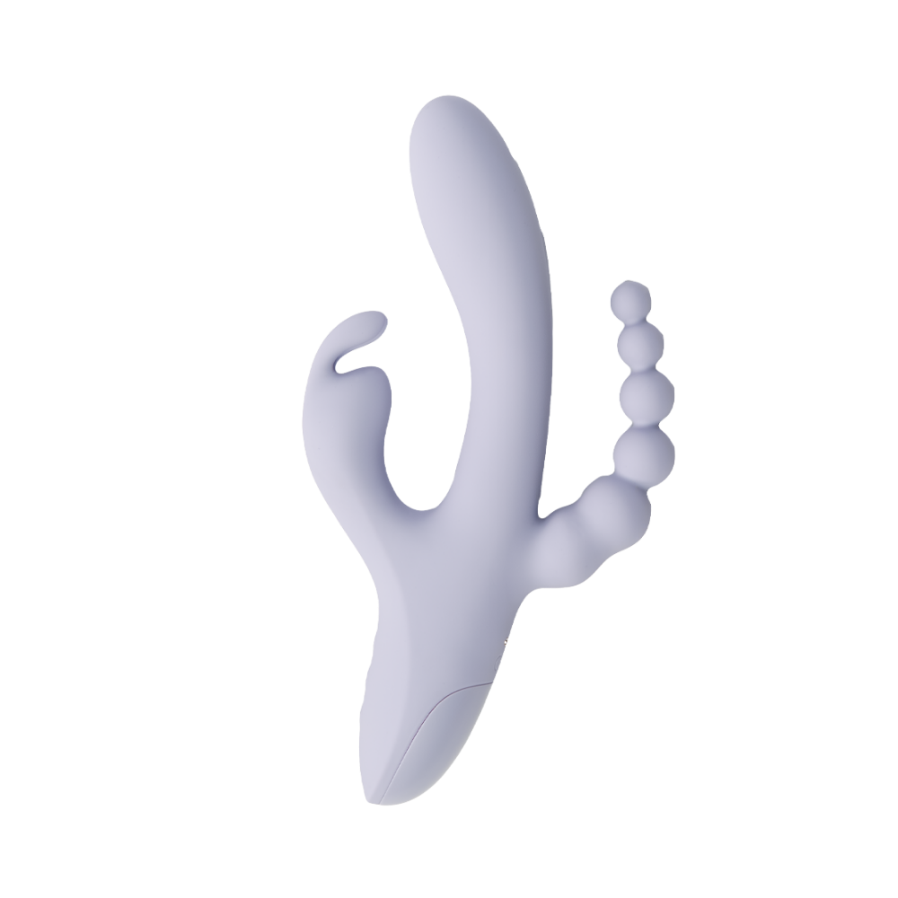 Triple The Fun is a 3-in-1 vibrator designed for layered pleasure and total control. Featuring a rabbit-eared clitoral teaser, a vibrating shaft, and a beaded anal stimulator, this versatile piece allows you to explore multiple sensations at once or focus on one area at a time. Each component operates independently, making it easy to customize intensity, rhythm, and combination play to suit your desires.Â